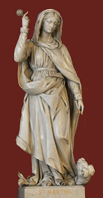 Seu culto tornou-se mais popular na época das Cruzadas, onde se conta que Santa Marta, com o poder da fé, estrangulara Tarasca, um dragão que devorava animais e crianças na França.