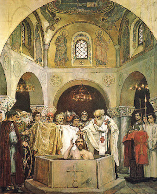 Vladimir começou a estudar o Evangelho e foi batizado em 989. Logo em seguida, recebeu o sacramento do matrimônio com a princesa Ana, filha de Basílio de Constantinopla. Desde então, chegavam cada vez mais sacerdotes missionários que percorriam seus domínios catequizando o povo e ministrando o batismo.